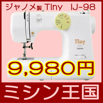 ジャノメ製ミシン Tiny(タイニー) IJ-98 ★IJ-98☆【PC家電_143P5】価格: 9,980円レビュー評価: 4.5 レビュー数:8 石田ミシン(Universal Sewing machine)Tiny(タイニー) IJ-98 メーカー希望価格 オープン価格 ミシンの大きさ 幅325mm×奥行143mm×高さ255mm 重量 5.2kg 消費電力 50W(照明ランプ12Wを含む) 付属品 ボビン2個、針(14番3個)、ねじまわし、目ほどき、ボタンホール押え、フエルト、針カバー付 製造元 ジャノメ製 機能性を重視した本格的パワフルミシンです ●頼もしいパワフル貫通力 デニムのようにゴワつく布地の重ね縫いがOK。コンパクトなのにとても力強いミシンです。 ●スタート&ストップ スタート・ストップは指先でボタンにタッチするだけ。初 |